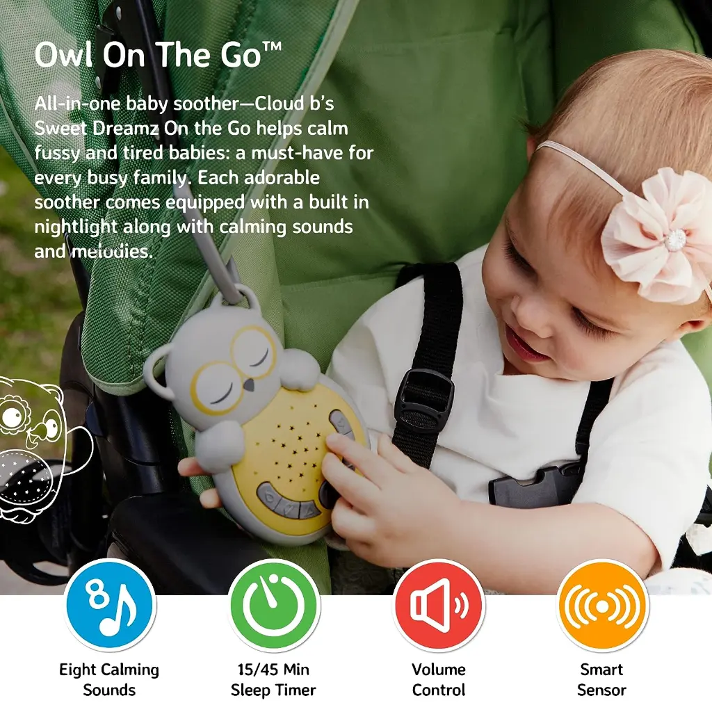 Sweet Dreamz On the Go is the all-in-one baby soother to calm fussy and tired babies: a must-have for every busy family. Each adorable soother comes equipped with a built in nightlight along with calming sounds and melodies. Choose from four gentle sounds, including a mother’s heartbeat and a soothing “shhh”sound, as well as four additional tranquil lullabies. Three different modes allow you to select the perfect setting while calming baby and easing them to sleep, wherever bedtime may land.