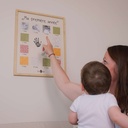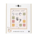 The My First Year Frame allows you to track baby's development month by month and proudly display photos of their growth over a year! With 12 window which frame each milestone photo and a space in the center of the poster to make their first inkless prints, it's fully customizable. The My First Year Frame is reversible (English/French) and its background is decorated with Petit Artichaut motifs, adding a designer touch while waiting for the photos of the months to come. Included in the kit are an inkless stamp pad and instructions. The "Smart Inkless Touch" technology of the stamp ensures a lifelike print, without requiring baby's skin to touch any ink.